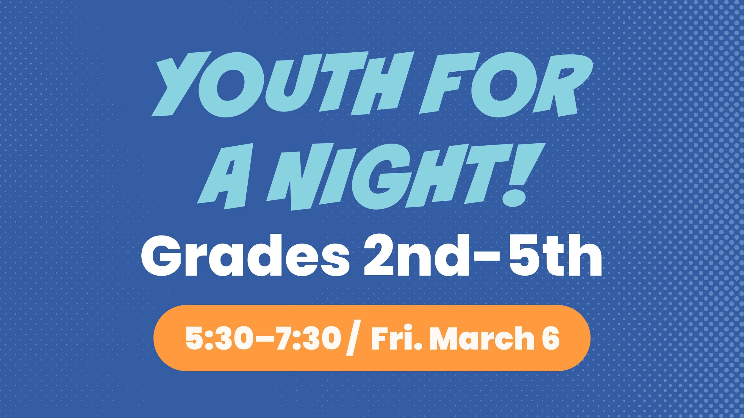 Drop off your kids in the Friendship room to hang out and watch a movie, eat popcorn, and play, while you take a couple hours to yourself. Please eat dinner before. For kids grades K-5th.